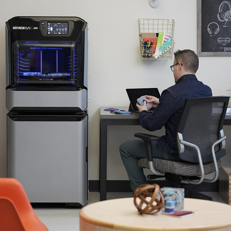 性能一:旋轉式打印平臺,J55采用旋轉式打印平臺,具有出色的表面光潔度和打印質量,擁有多材料功能以及可用于工業和機械設計的材料配置,可以保證非常穩定、一致的性能。性能二:超過500,000 種顏色組合J55可生成超過500,000 種可分辨的顏色組合,同時打印五種樹脂,并提供多材料性能。作為 PANTONE Validated? 認證的 3D 打印機,J55支持 Stratasys CMYK 顏色匹配超過1,900種可打印的 Pantone Solid Coated 和 SkinTones?,能顯著提高原型的打印速度、效率和色彩逼真度。無論您需要什么顏色和紋理,J55都能助您將最富想象力的想法變為現實,在設計過程中盡早作出更準確的決策。性能三:樣件幾乎無需后處理J55將 PolyJet 技術的高品質與緊湊、辦公室適用的設計結合起來,可以一次打印多色部件。由其打印出的零件幾乎不需要后處理,不僅將材料浪費降至最低限度,還大大節省了打磨和手工上漆的時間和工作量,使設計過程更加順暢,部件的品質更加穩定。