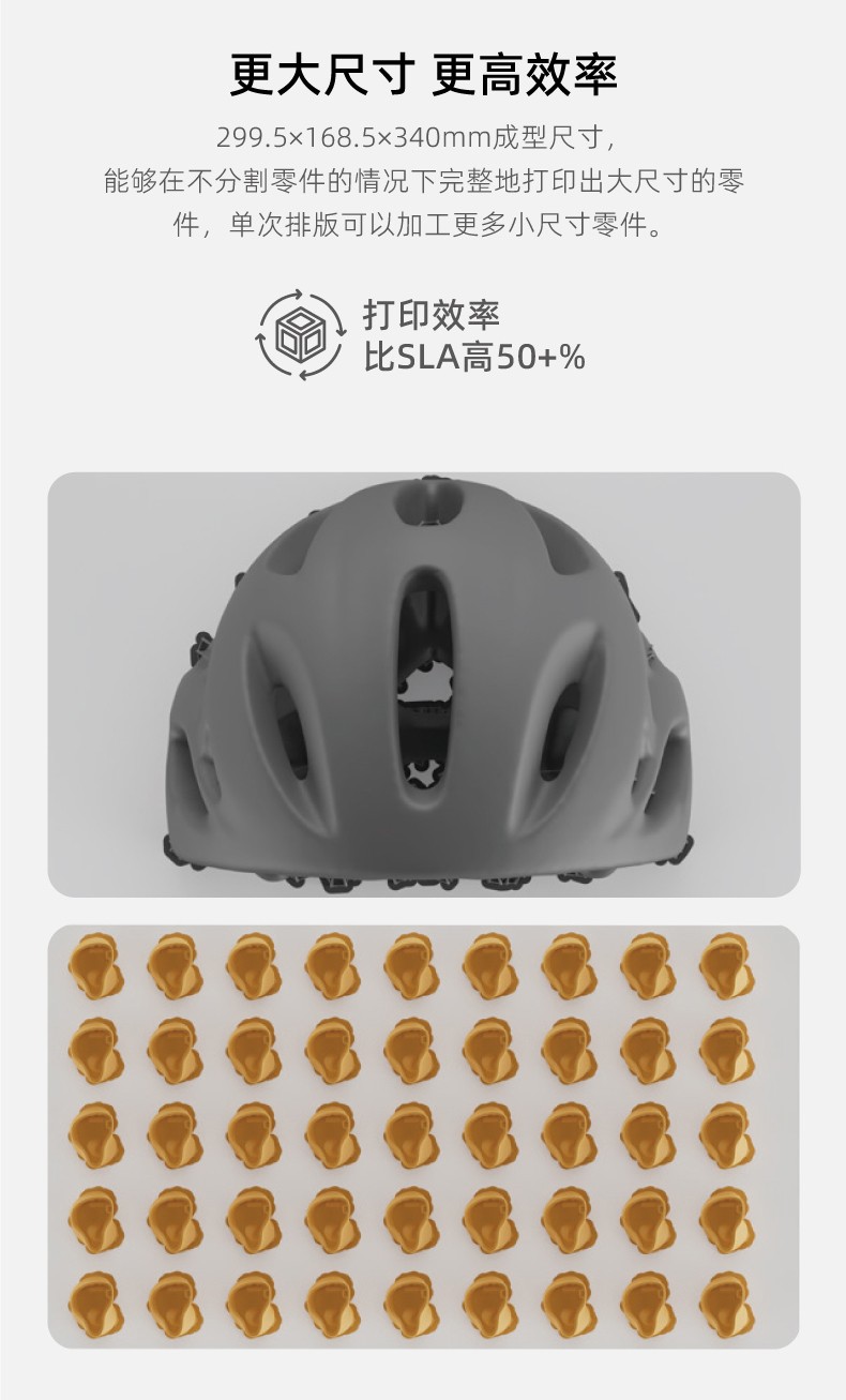 shape 4K的成型尺寸為299.5x168.5x340mm,能夠在不分害零件的情況下完整地打印出大尺寸的零件,您也可以利用shape 4K的幅面優(yōu)勢,單次排版可以加工更多小尺寸零件