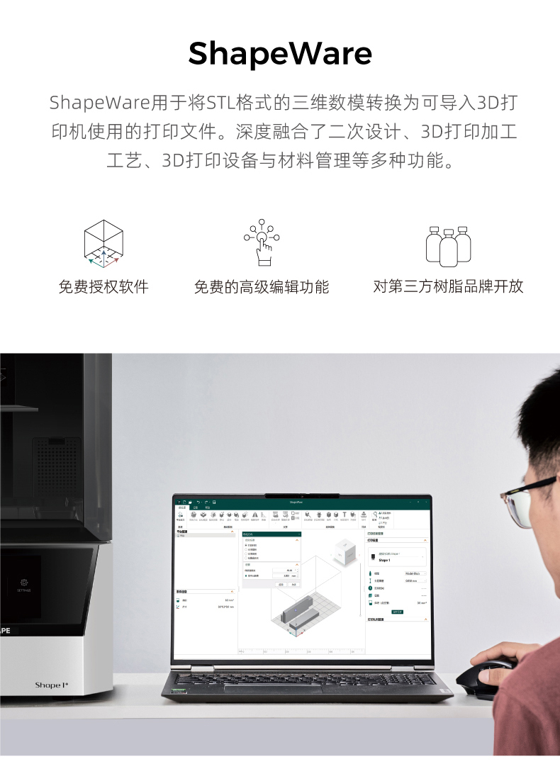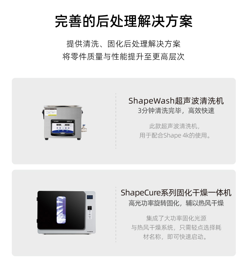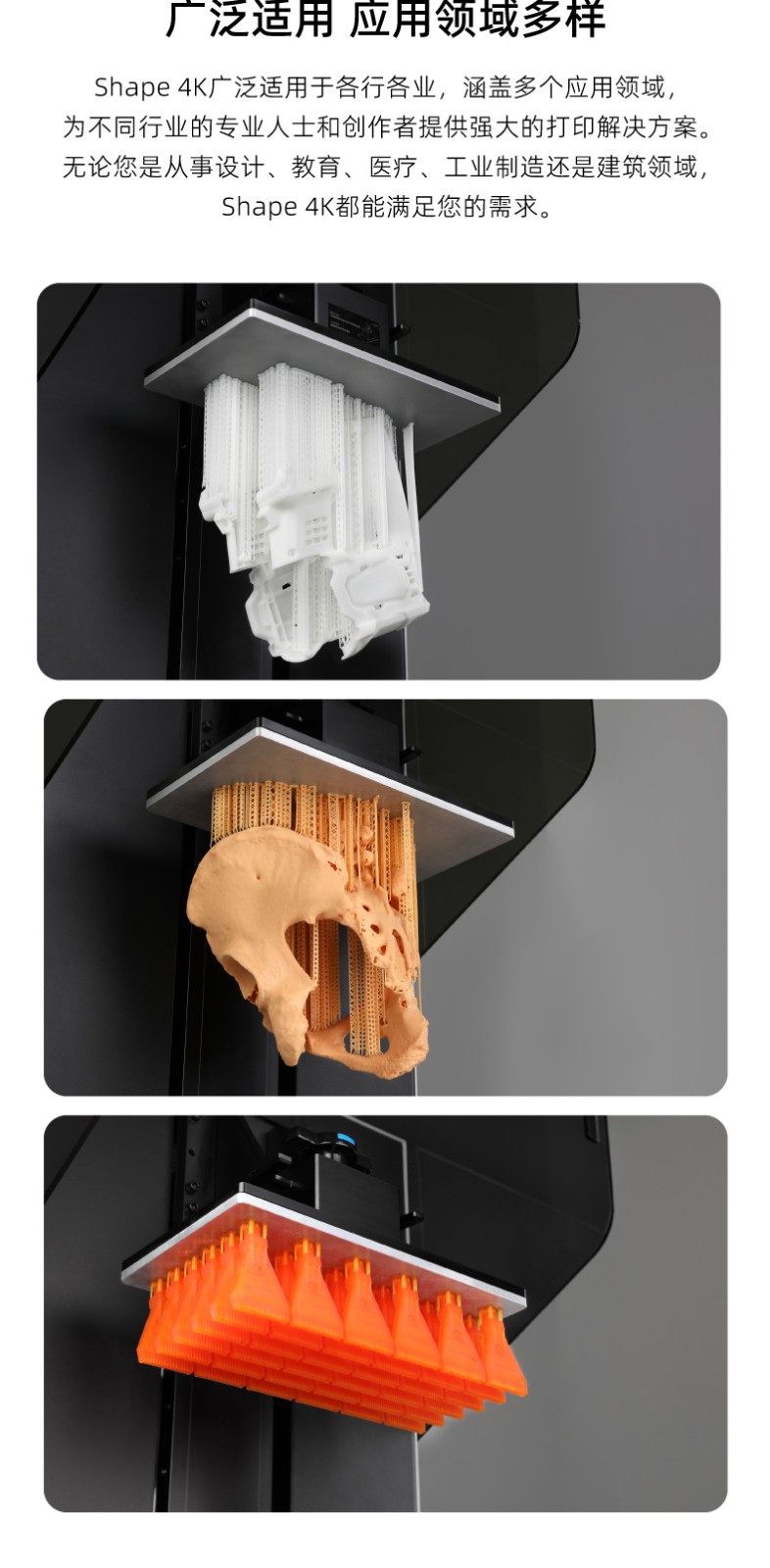 shape 4K配備了打印平臺加熱功能,打印件的附著力增加40%以上,減少了零件脫落幾率,打印成功率得到顯著提升。