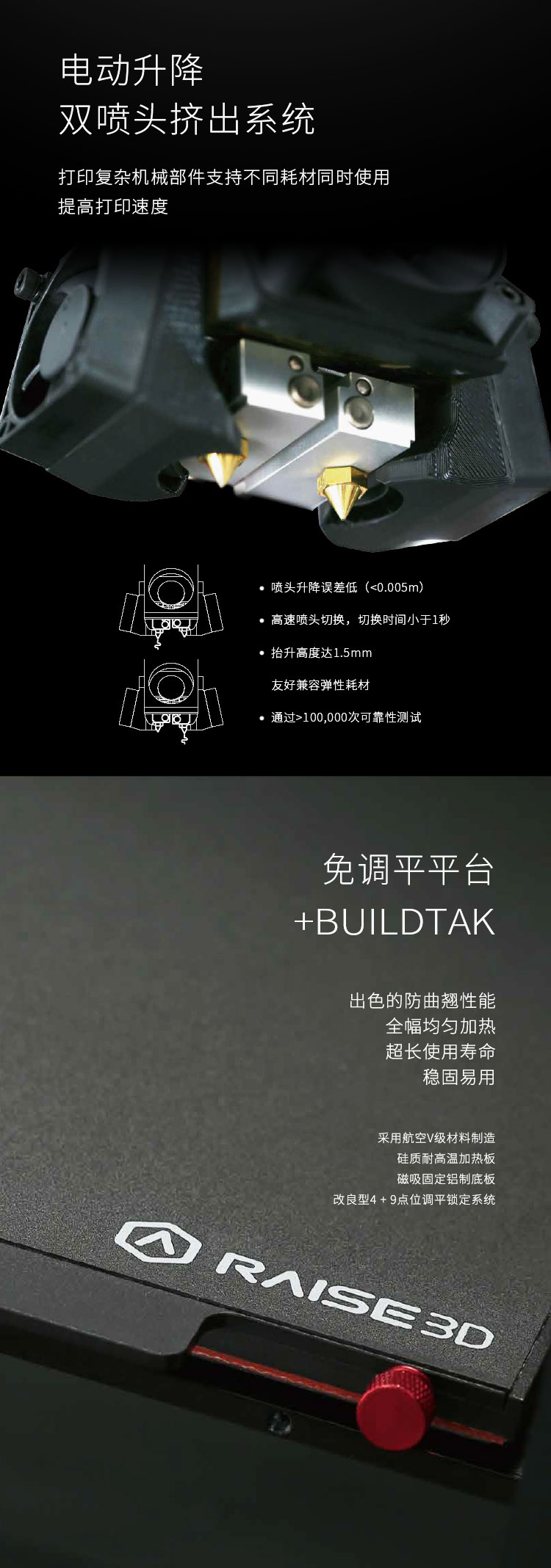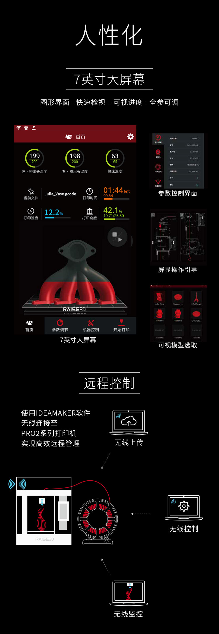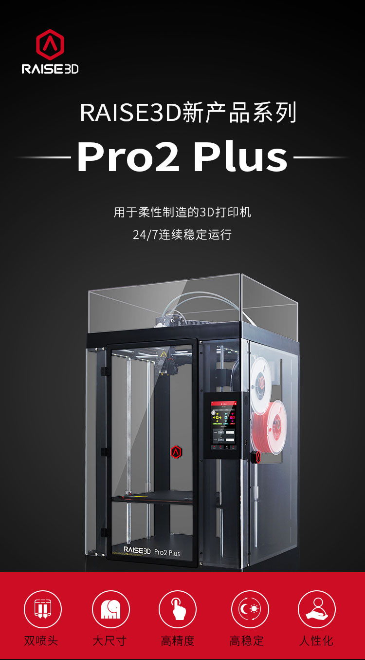 柔性制造3D打印機 Raise3D Pro 2 Plus為你帶來全新的高效3d打印方式,柔性制造更高效率,更佳水準,支持24小時連續高強度使用,50000小時測試時間,滿足各種場景的打印需求,無論是在零件制造,模型打印,藝術設計都有著廣泛的場景應用。